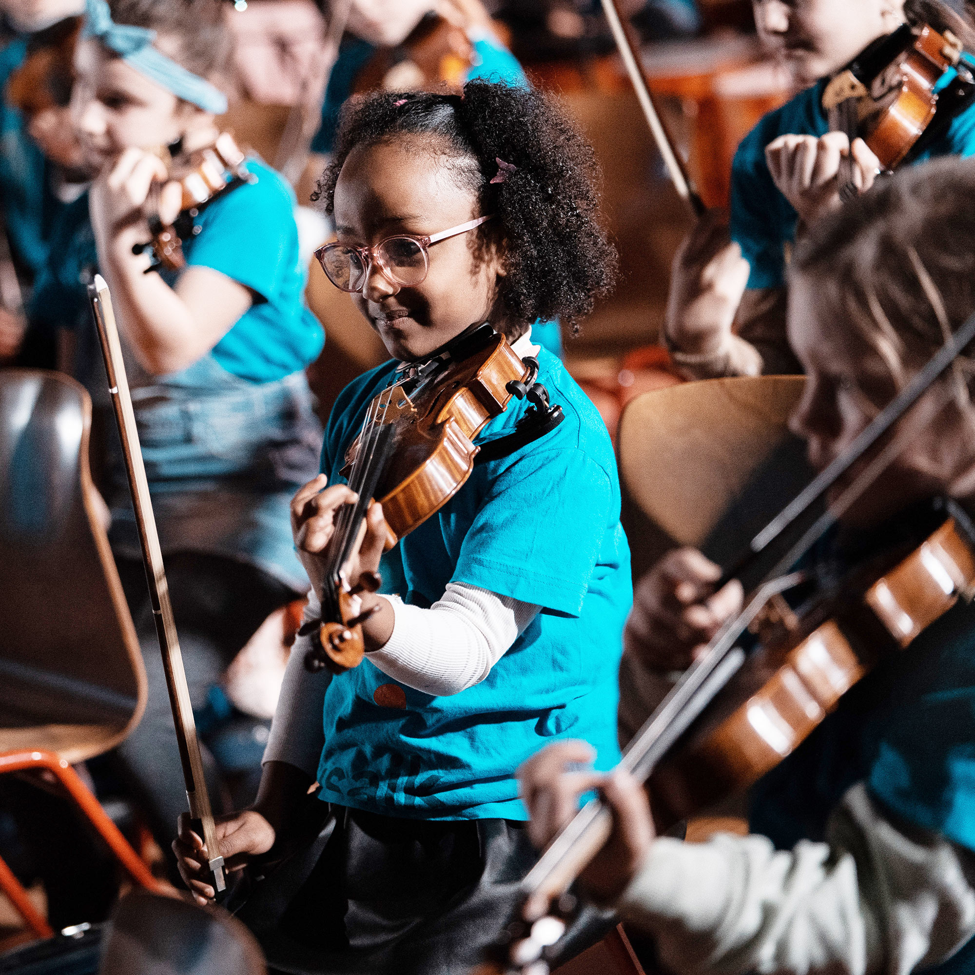 Im Unterricht werden zudem gemeinsame Konzerte mit Mitgliedern der Staatskapelle vorbereitet, die ein besonderes Highlight für alle Kinder und natürlich auch für die Kapellmitglieder darstellen. Denn dann sitzen die Schülerinnen und Schüler gemeinsam mit den Musikerinnen und Musikern auf der Bühne und die stolzen Eltern, Geschwister und Großeltern gebannt im Publikum, die oft auf diese Weise erstmals mit klassischer Musik in Berührung kommen.